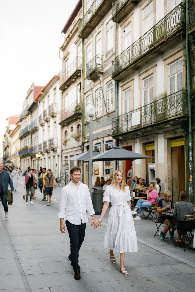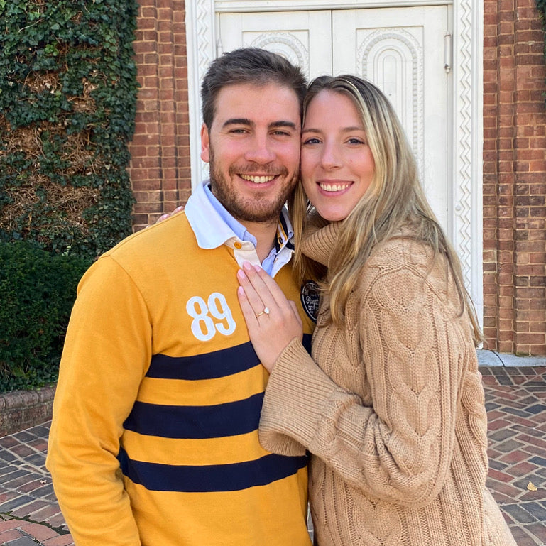 "Pedro and I met in late 2020 in an Irish pub in Lisbon, where Pedro was born and raised. I was living in Madrid at the time getting a masters degree and had taken a weekend trip with a classmate to Lisbon. Over the next year we flew back and forth between Madrid and Lisbon (to the extent Covid restrictions allowed our travel), and in November 2021 Pedro and I moved into an apartment in Manhattan, where I began working as an associate at a law firm and Pedro began working for a general contractor as a structural and civil engineer. When my 5th year college reunion came around, Pedro and I drove down to Lexington, VA, where he proposed to me on November 3, 2023 privately on the Washington and Lee Colonnade. After the proposal, we made our way back to the tent where all of my college friends were gathered, where we got to break the fun surprise that we were engaged!" - Bianca