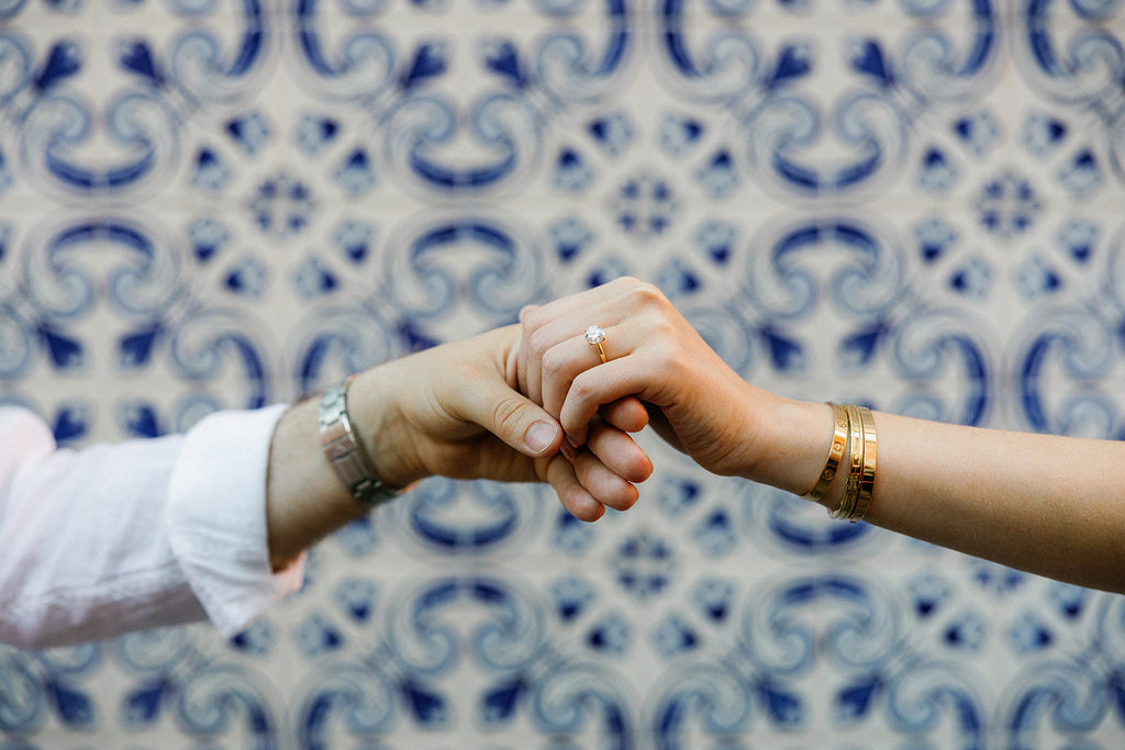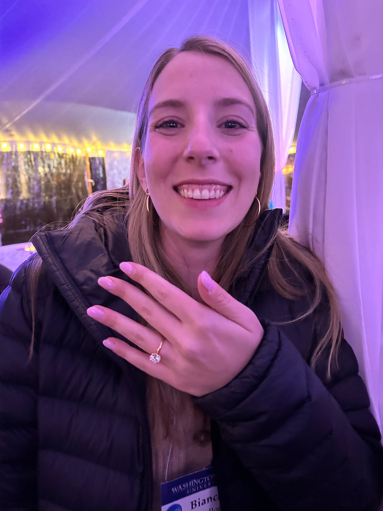 “Pedro proposed to me with a gorgeous 2.9ct brilliant cut round diamond, on a yellow gold band. Growing up in the business, I always had my eye on engagement rings, but it wasn't until summer 2023 that I went with my mom to try on rings for myself to figure out the style I really wanted. My ring is extra special to me because it was a family project - my mom was there when I found my style, Pedro guided my dad in the design based on the hints I'd dropped over the months preceding our engagement, and my dad worked with Pedro to choose the diamonds. What is even more amazing is that they did all of this right under my nose, as Pedro and I were living with my parents at the time of my engagement, and yet the engagement timing itself was a complete surprise." - Bianca