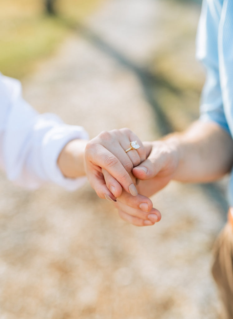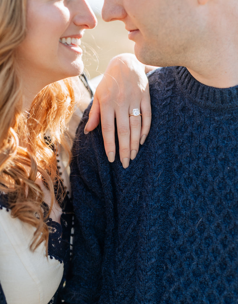 Cassidy’s beautiful dream ring features a solitaire cushion cut diamond on a yellow gold setting.