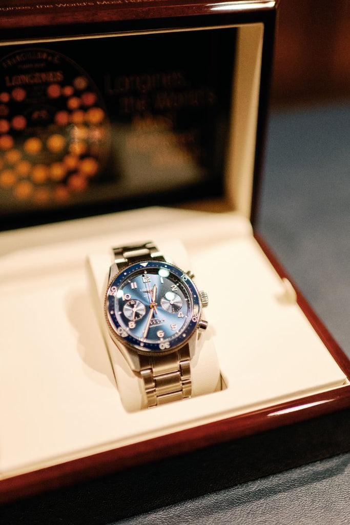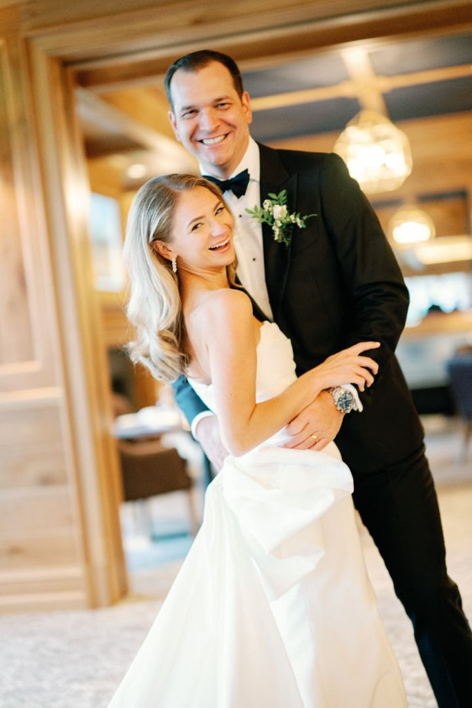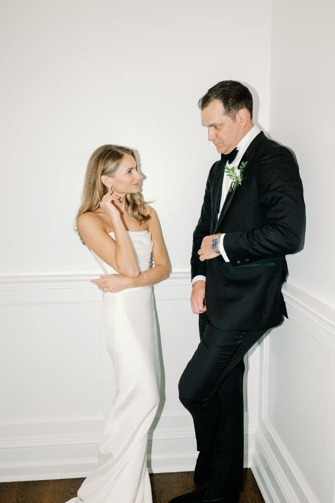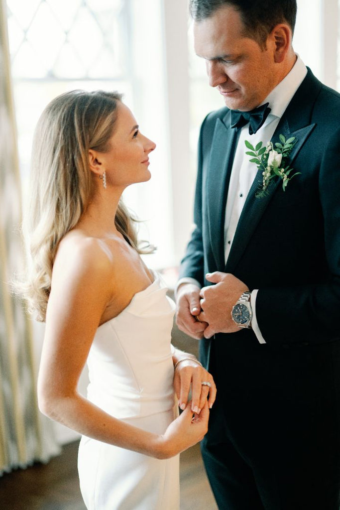 The sparkle of Kristen’s earrings was the perfect complement to her radiant bridal beauty, and Nicholas’s Longines is sure to be an heirloom timepiece.