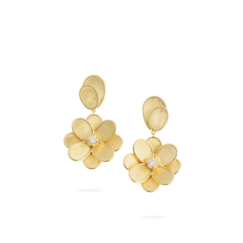 Marco Bicego LUNARIA PETALI 18K YELLOW GOLD DIAMOND FLOWER DROP EARRINGS