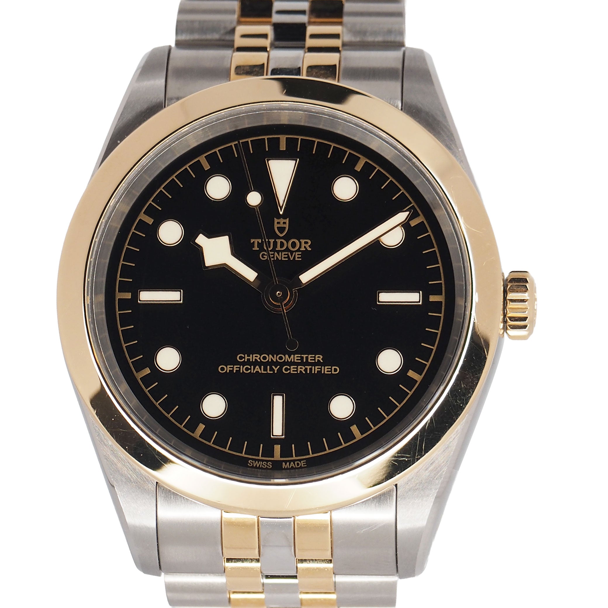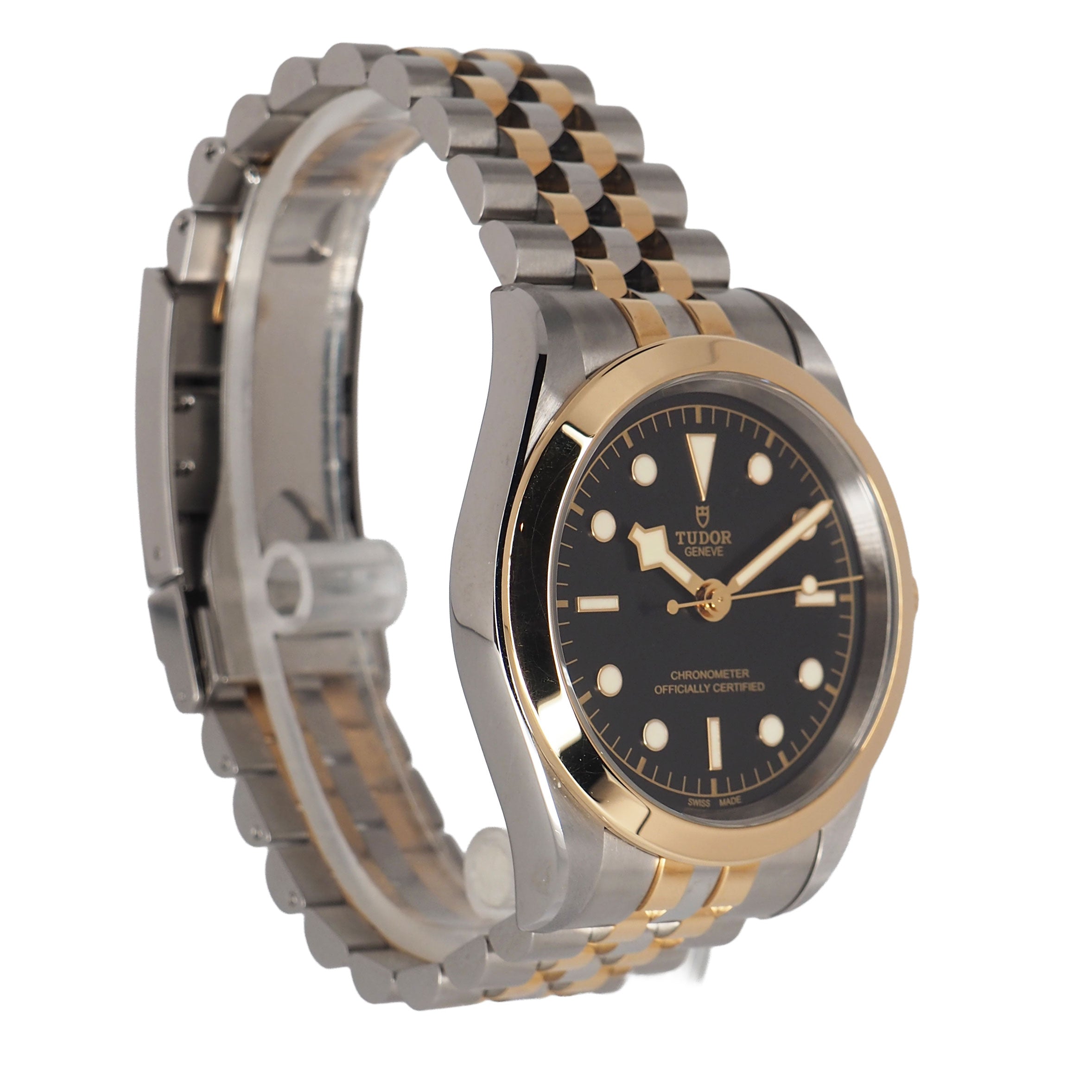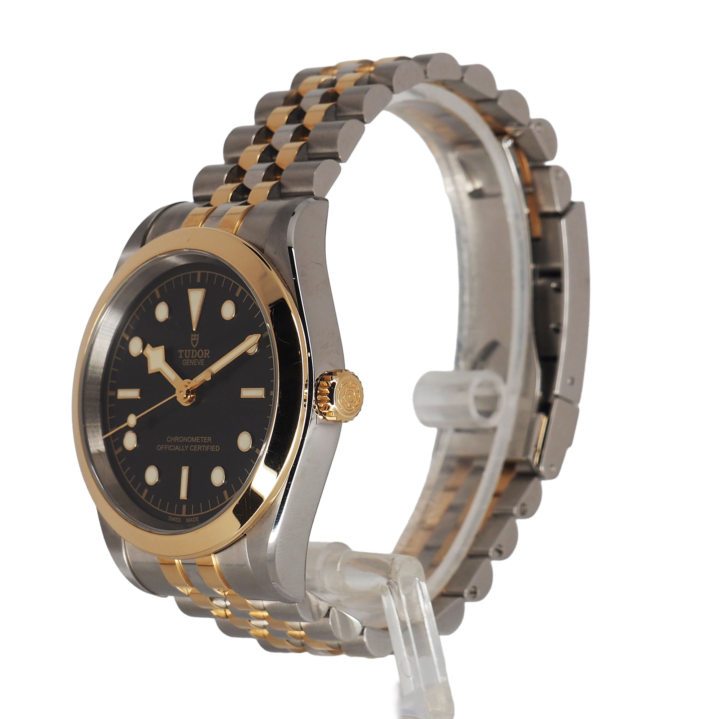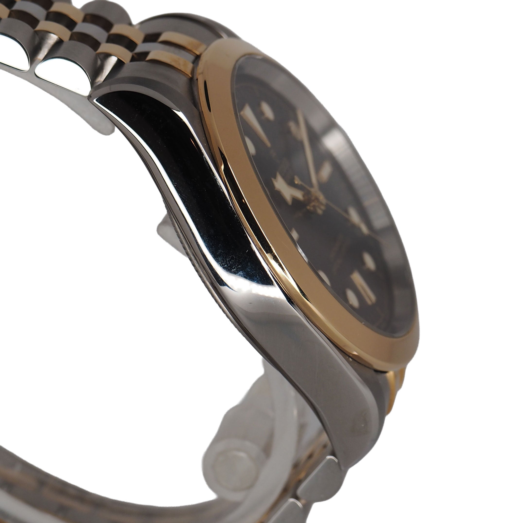 The Tudor Black Bay One 41 S&G (ref. M79683-0001) combines stainless steel and 18k yellow gold in a clean, modern design. Its 41 mm case is fitted with a fixed yellow-gold bezel and a black dial with simple, highly legible markers. Inside, the watch is powered by Tudor’s MT5601 automatic calibre, a COSC-certified movement with a 70-hour power reserve. The five-link bracelet uses alternating steel and yellow-gold links and includes Tudor’s T-Fit clasp for easy adjustment. A flat sapphire crystal and 100-meter water resistance round out the practical features. The result is a versatile piece that sits comfortably between sporty and classic styling.