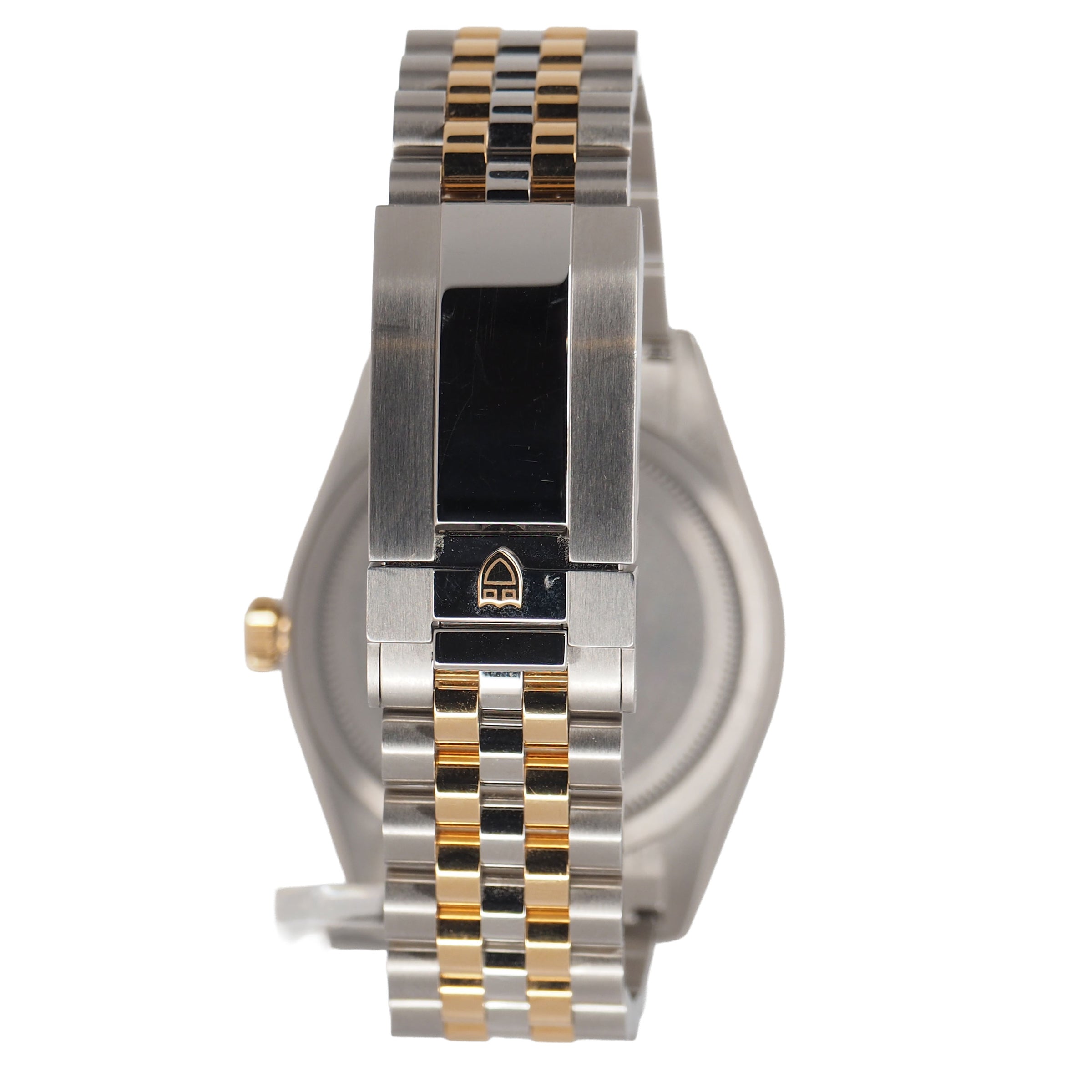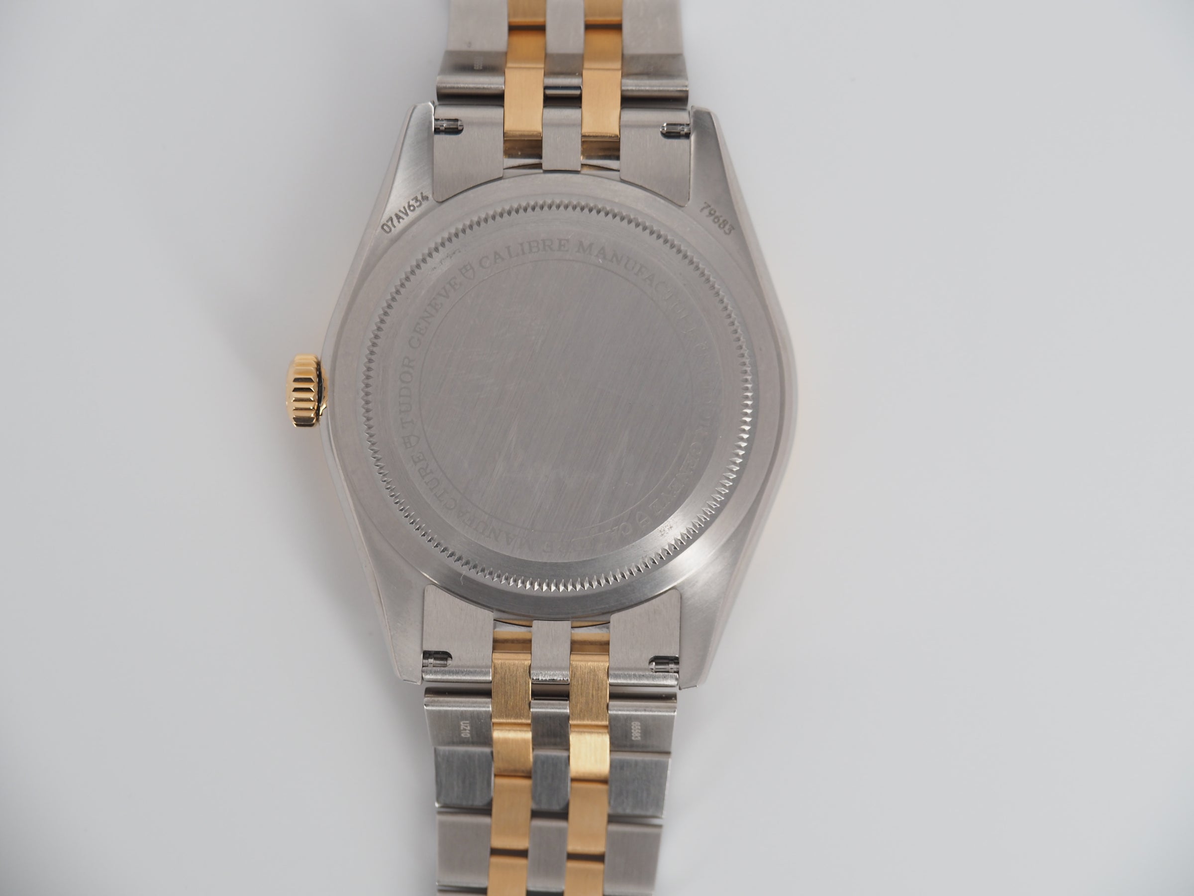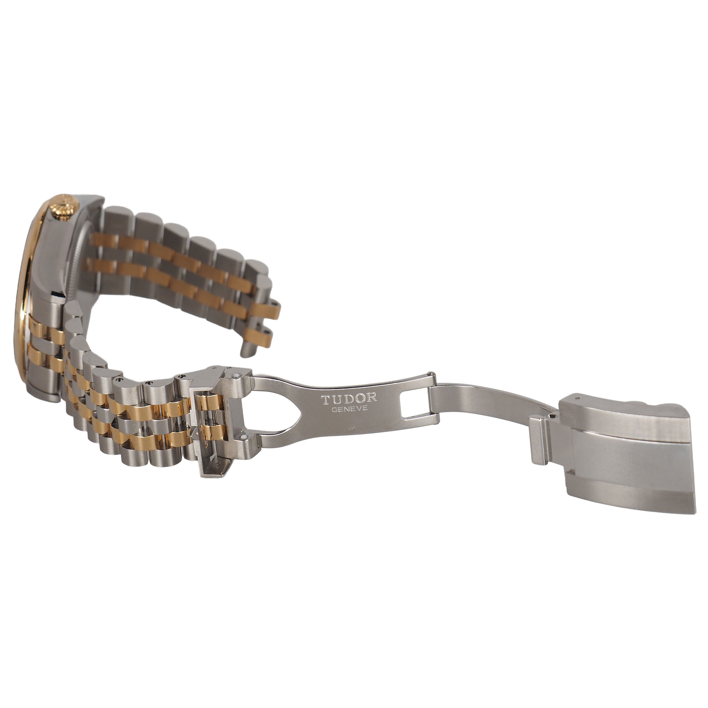 • Bracelet: First center links in steel or solid yellow gold. Remaining centre links are made of a steel core capped with 0.2mm of yellow gold. TUDOR "T-fit" folding clasp with safety catch. The logo on the catch is made of solid yellow gold