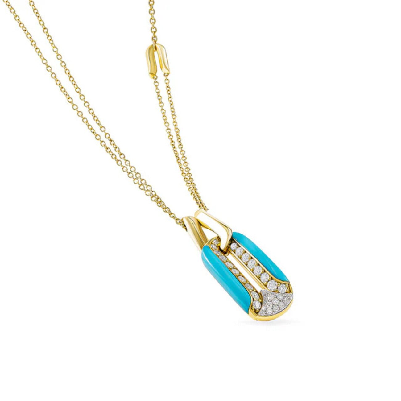 Miseno Arco 18K Yellow Gold Turquoise and Diamond Pendant