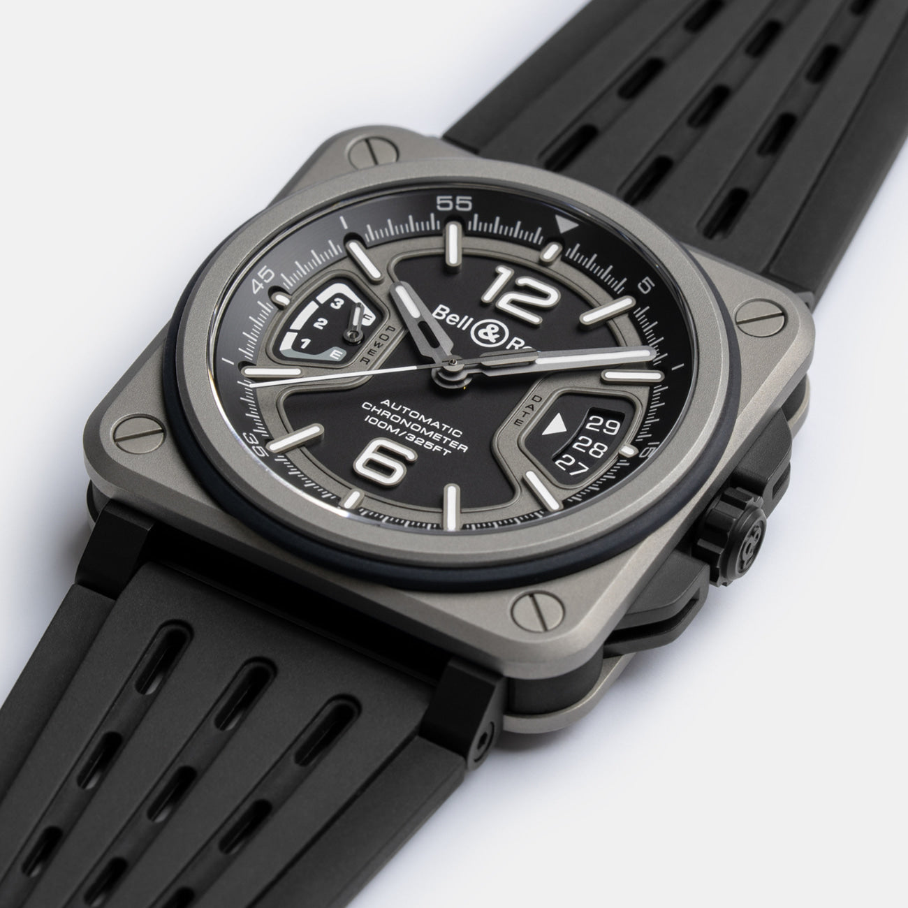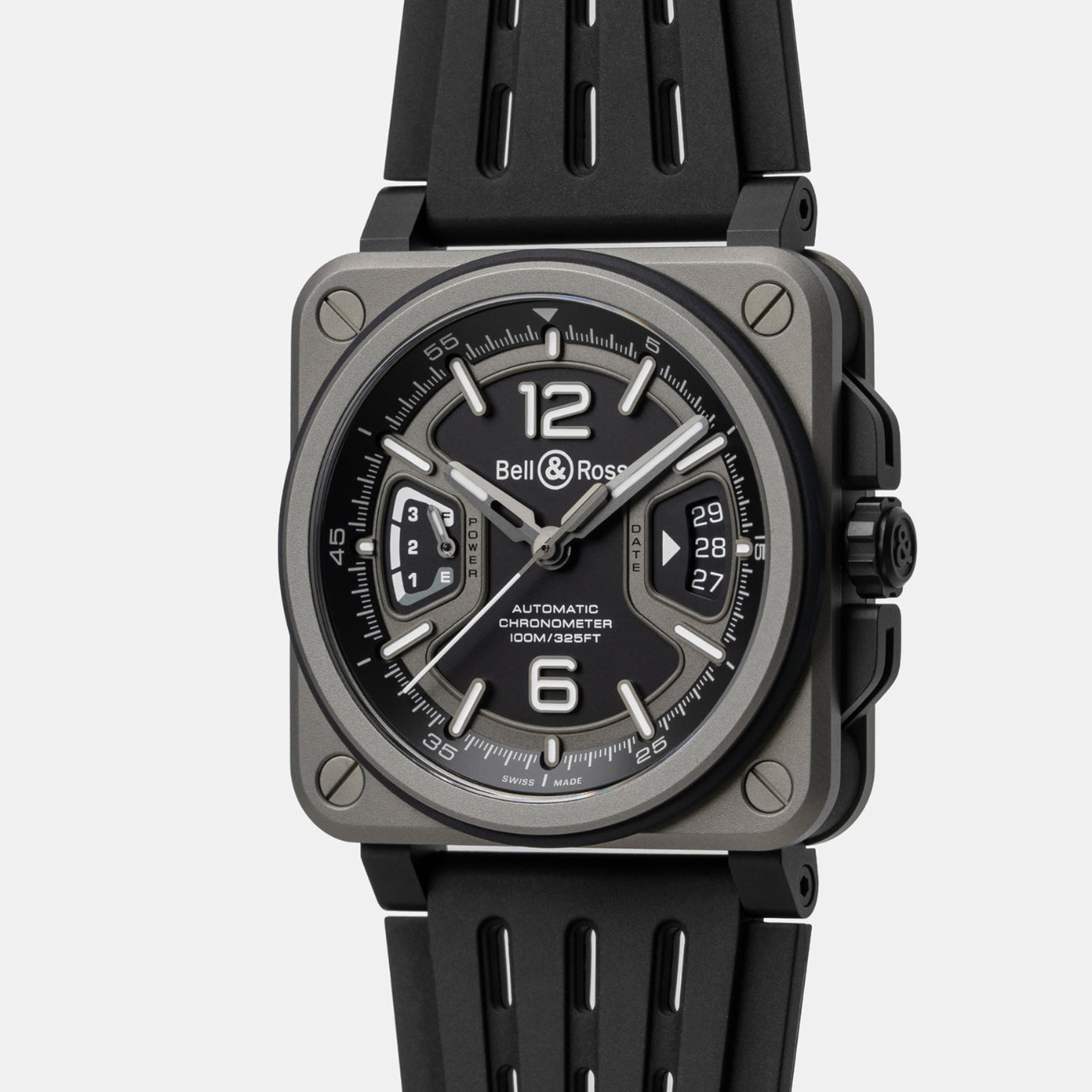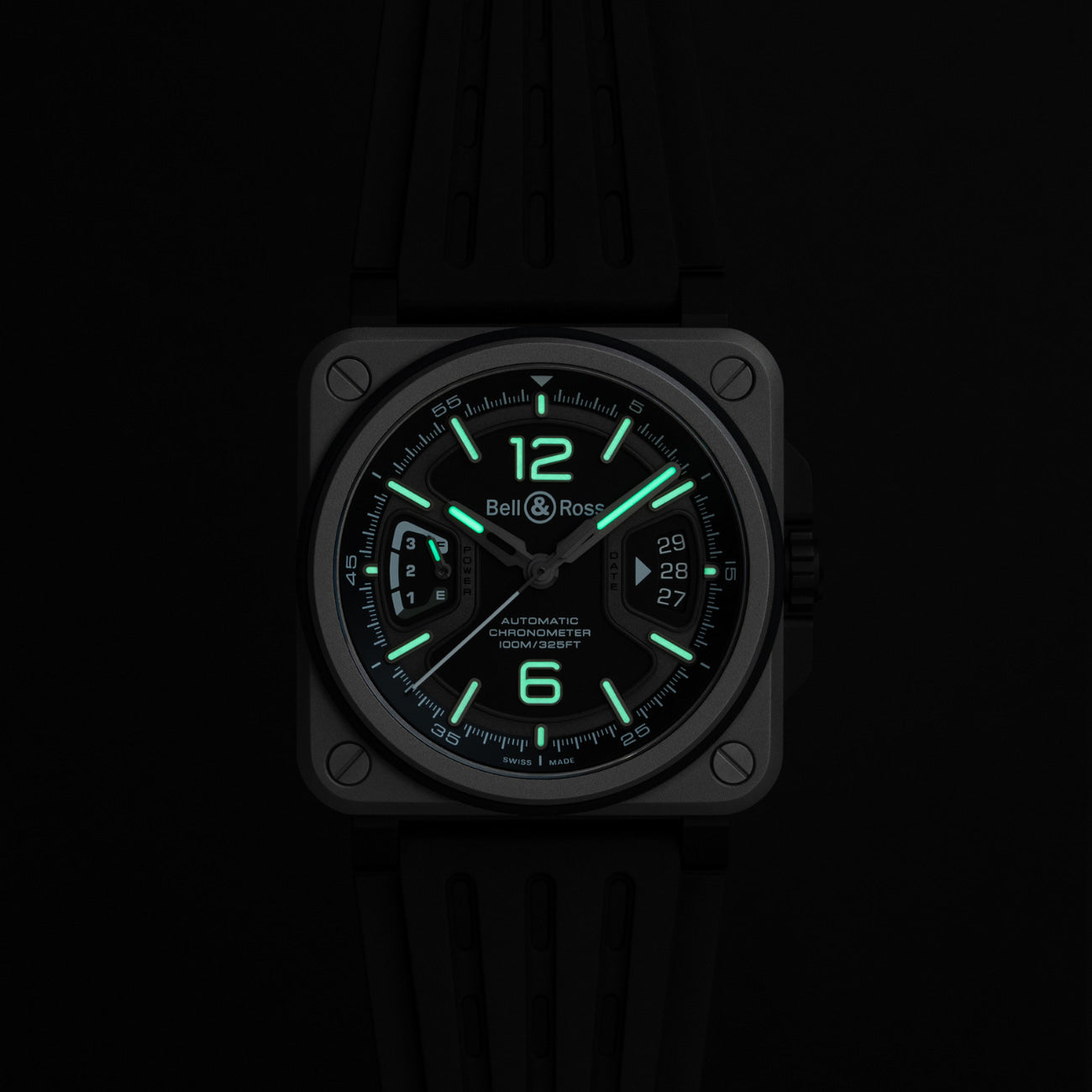 The BR-X3 reinvents the BR-03, thanks to an innovative construction and an in-house movement with a 5-year warranty. Reflecting its aeronautical inspiration, it is intended for aficionados of technical watches with a bold design.