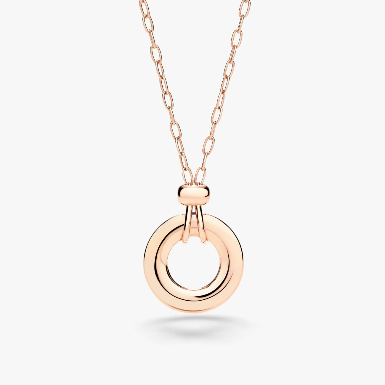 This rose gold and white diamonds pendant mimics in miniature the design of the legendary rings and hangs from a delicate and adjustable rose gold chain. The essence of effortless Milan chic.