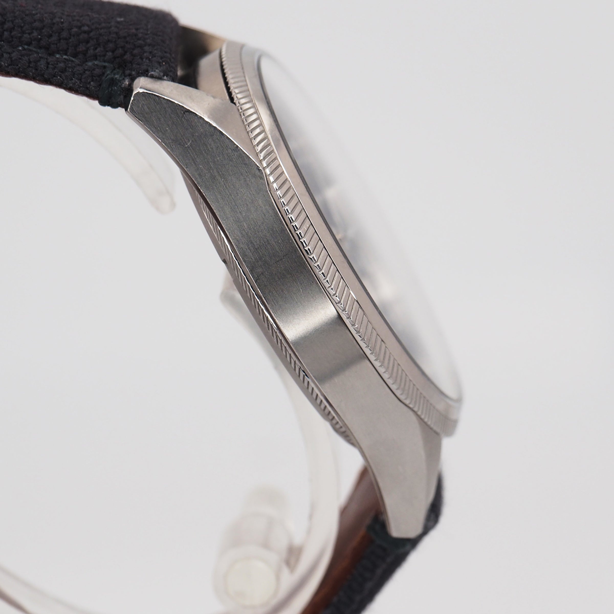 Bracelet: Black Fabric strap with stainless steel buckle