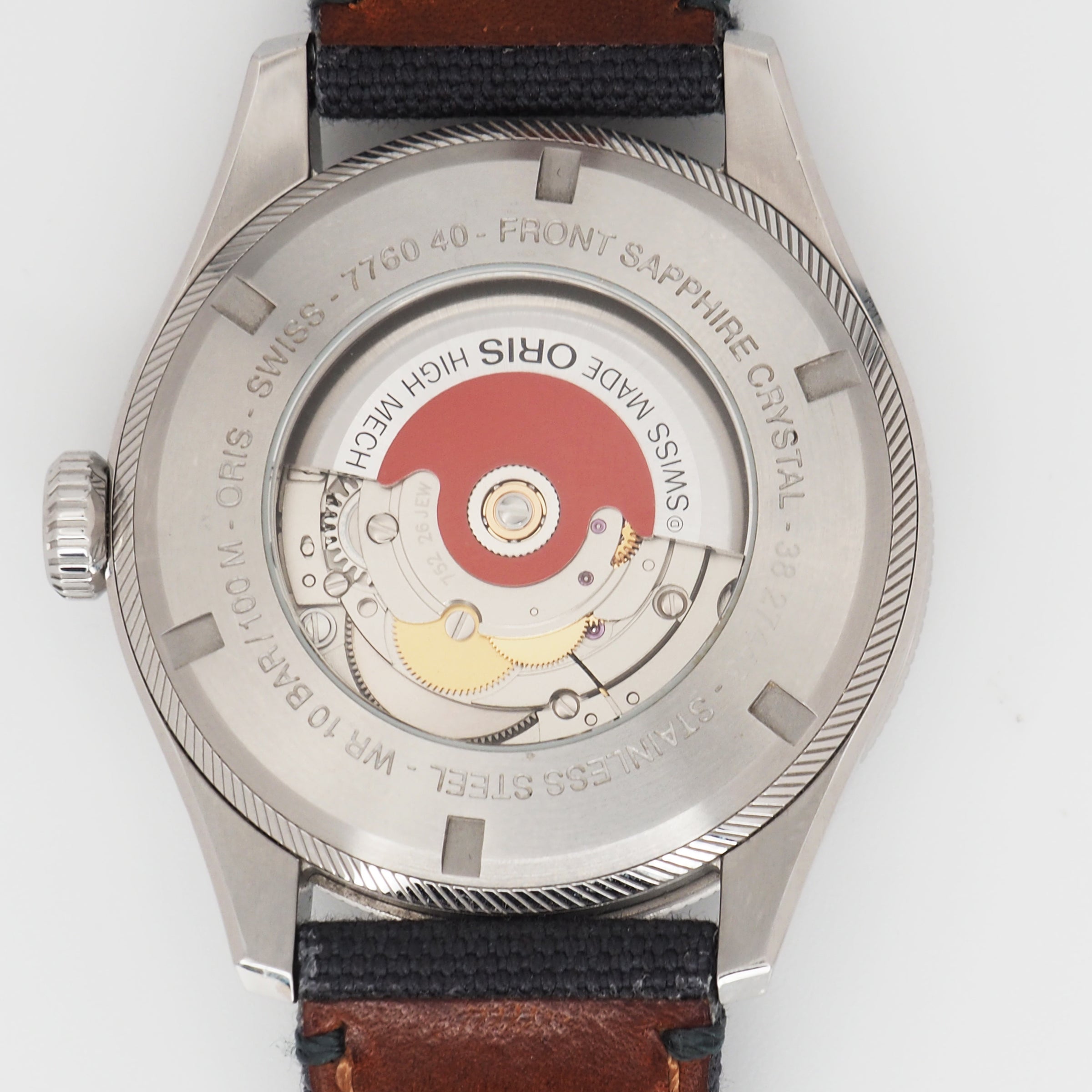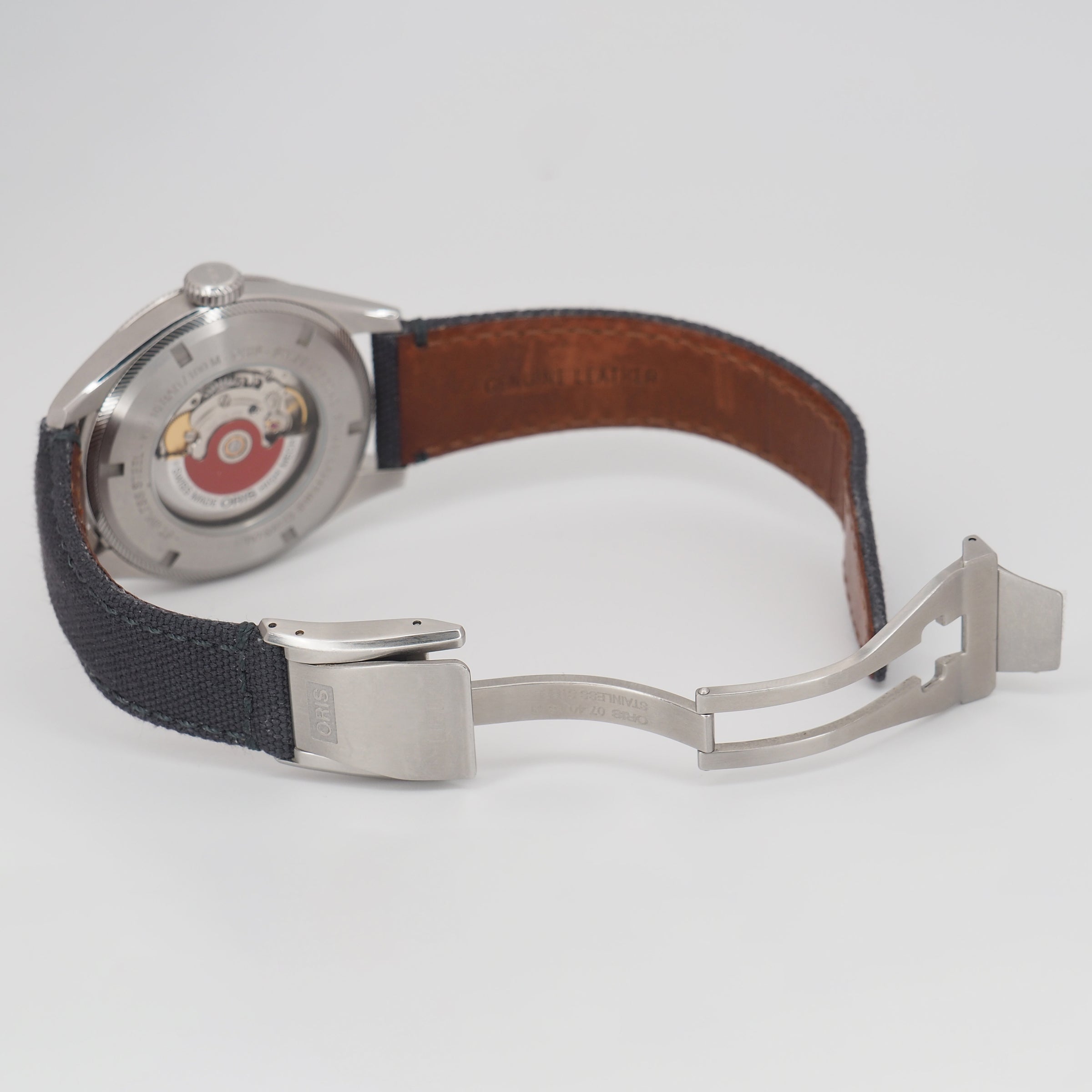 Powered by the Oris Caliber 752 automatic movement, this model offers a 38-hour power reserve, stop-seconds functionality, and a clear display through a mineral glass caseback. The domed sapphire crystal is anti-reflective on the inside, and the watch is water-resistant to 100 meters.