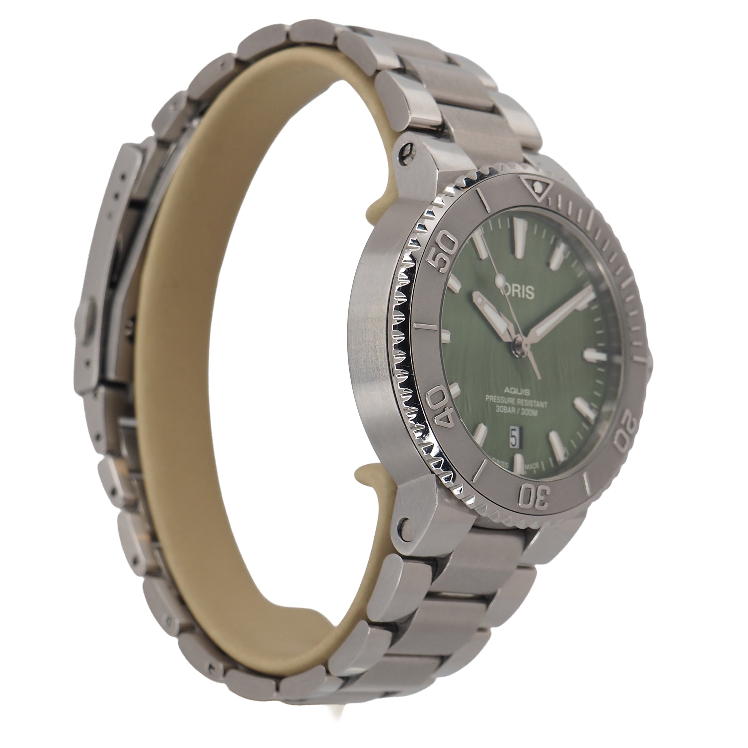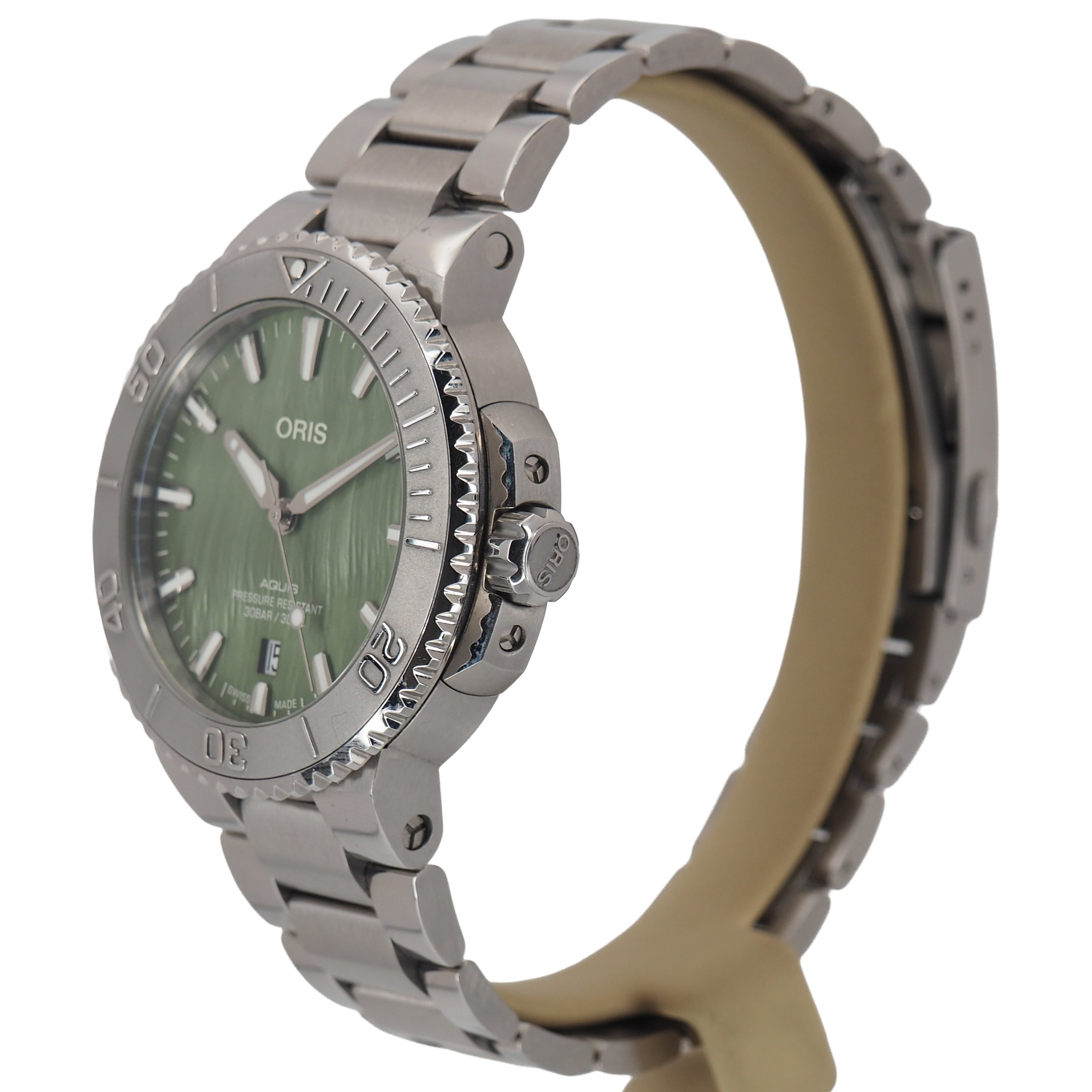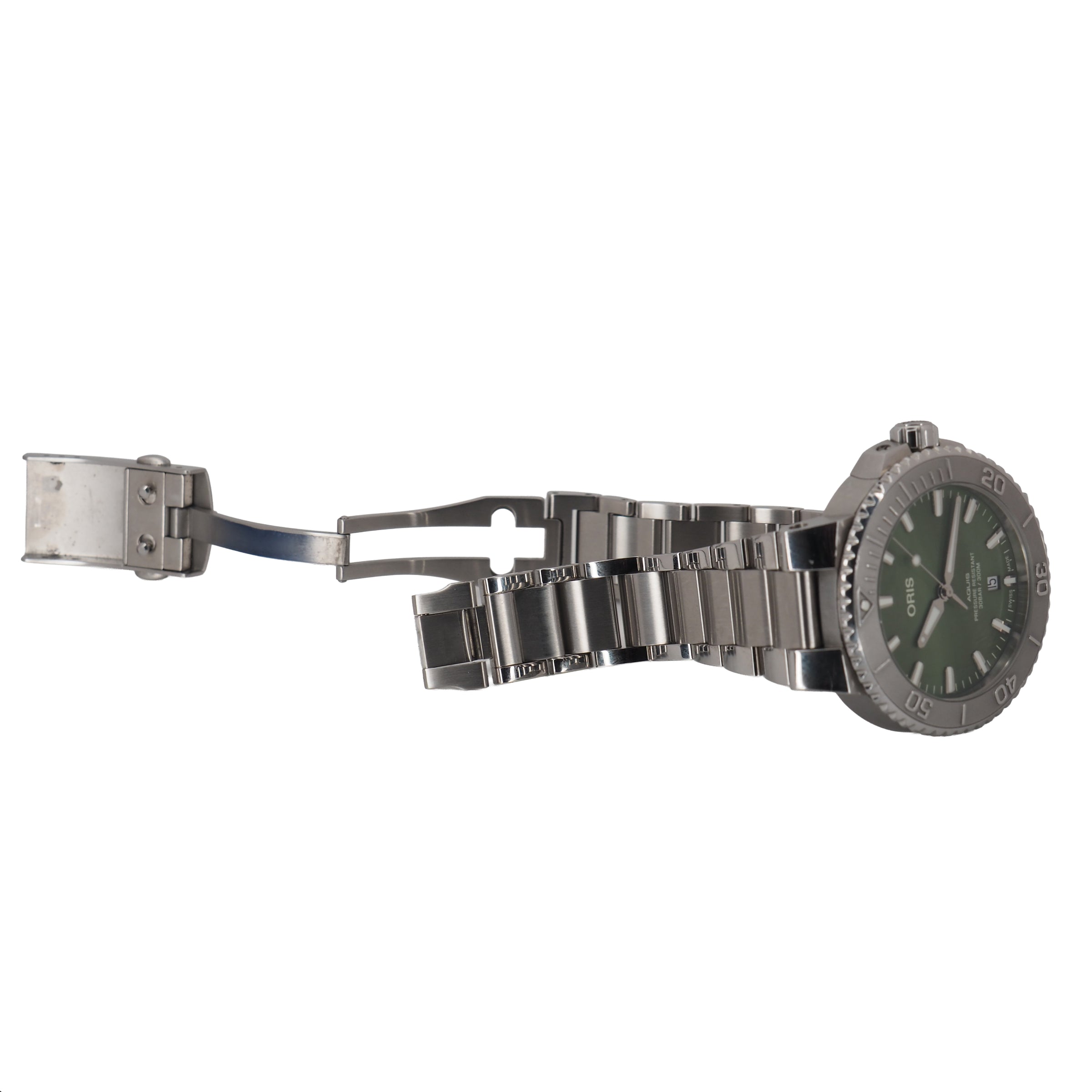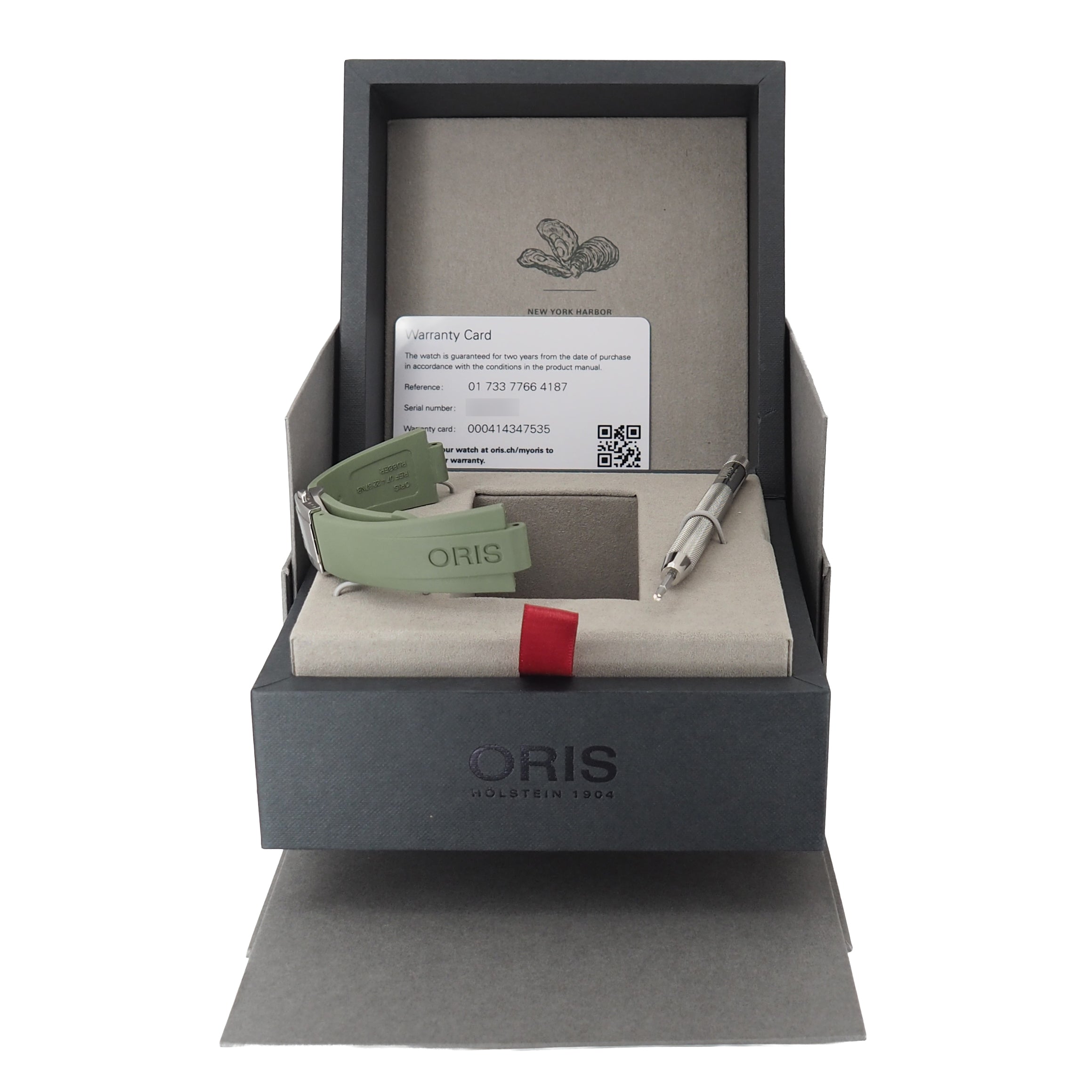 The Oris Aquis “New York Harbor” Limited Edition (Ref. 01 733 7766 4187‑Set) is a 41.5 mm dive watch made to support the Billion Oyster Project, helping restore oyster reefs in New York Harbor. It features a striking green dial, a stainless steel case, and a domed sapphire crystal, with water resistance up to 300 m. The watch is powered by the automatic Oris Calibre 733‑1 with about 41 hours of power reserve. This set includes both a rubber strap and a stainless steel bracelet, along with the original box, certificate, and an exchange tool. With only 2,000 pieces made, it’s a rare and meaningful watch for collectors and dive watch enthusiasts.