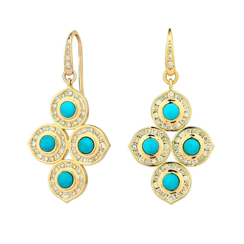 18K Yellow Gold, Diamond, & Turquoise Drop Earrings