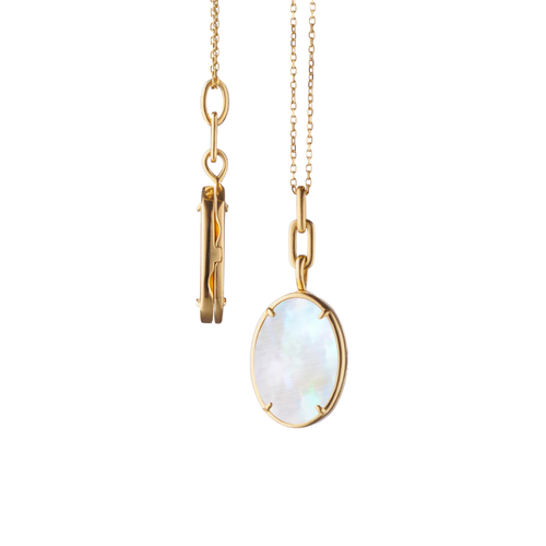 18K Yellow Gold "Elle" Stone Slim 18K Yellow Gold Locket Necklace