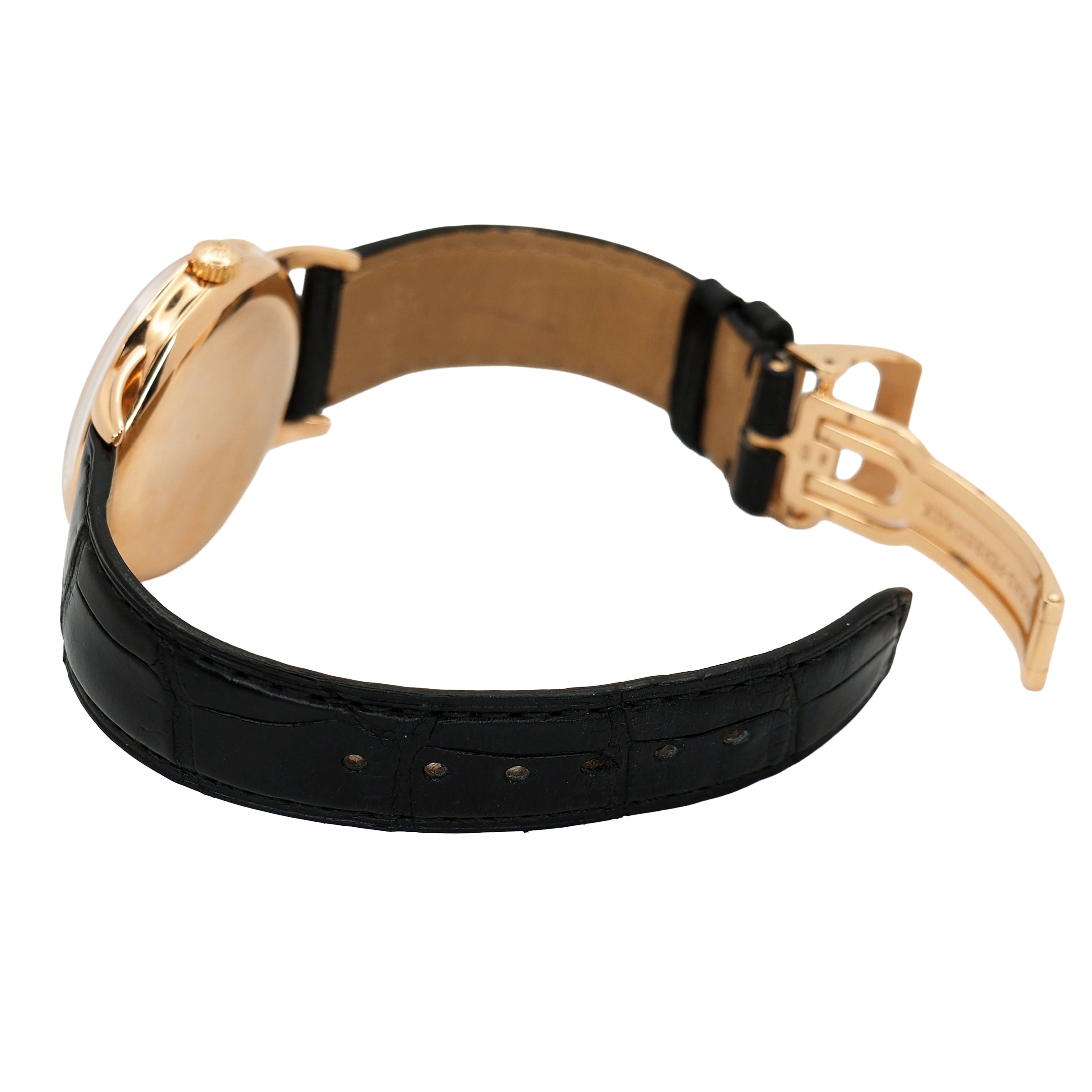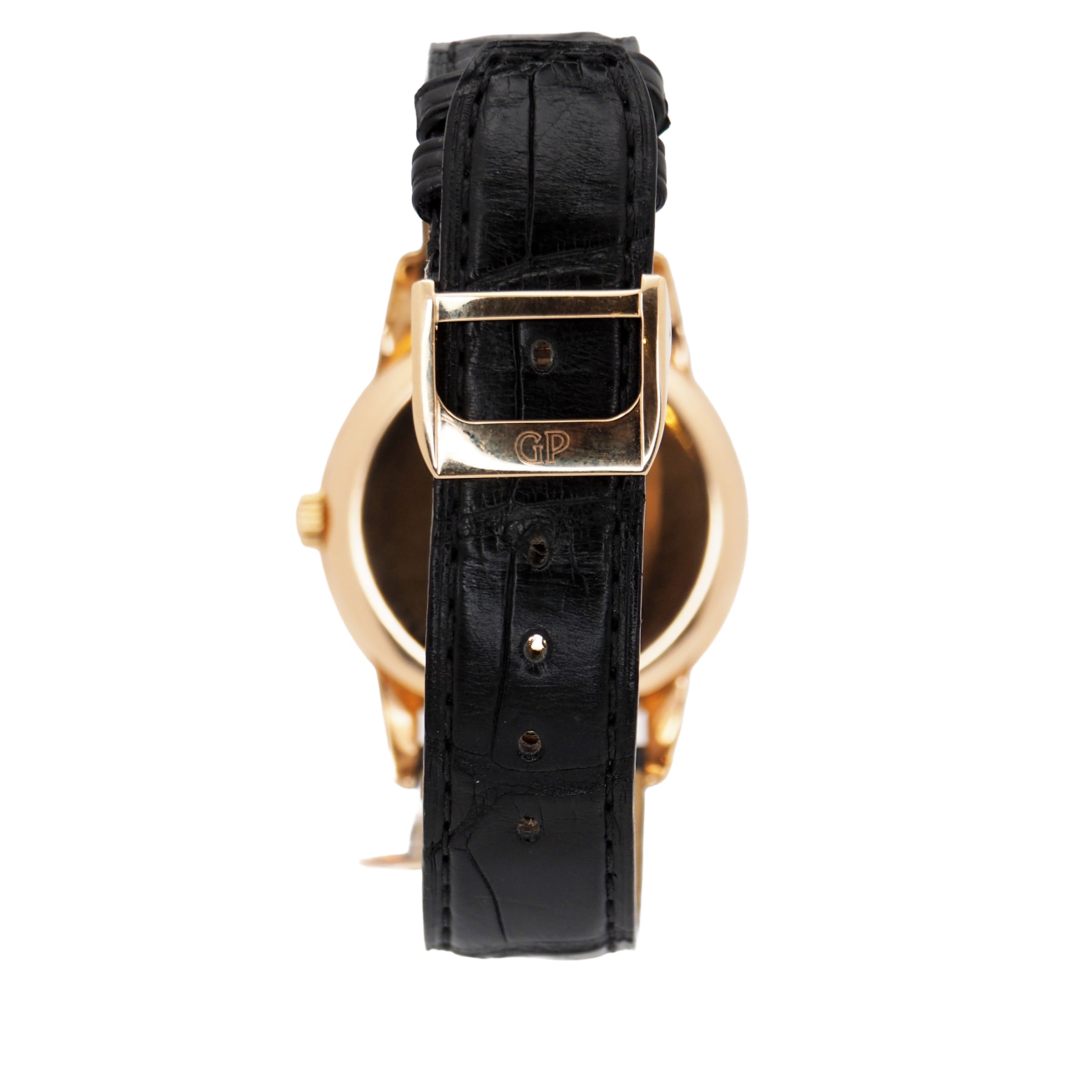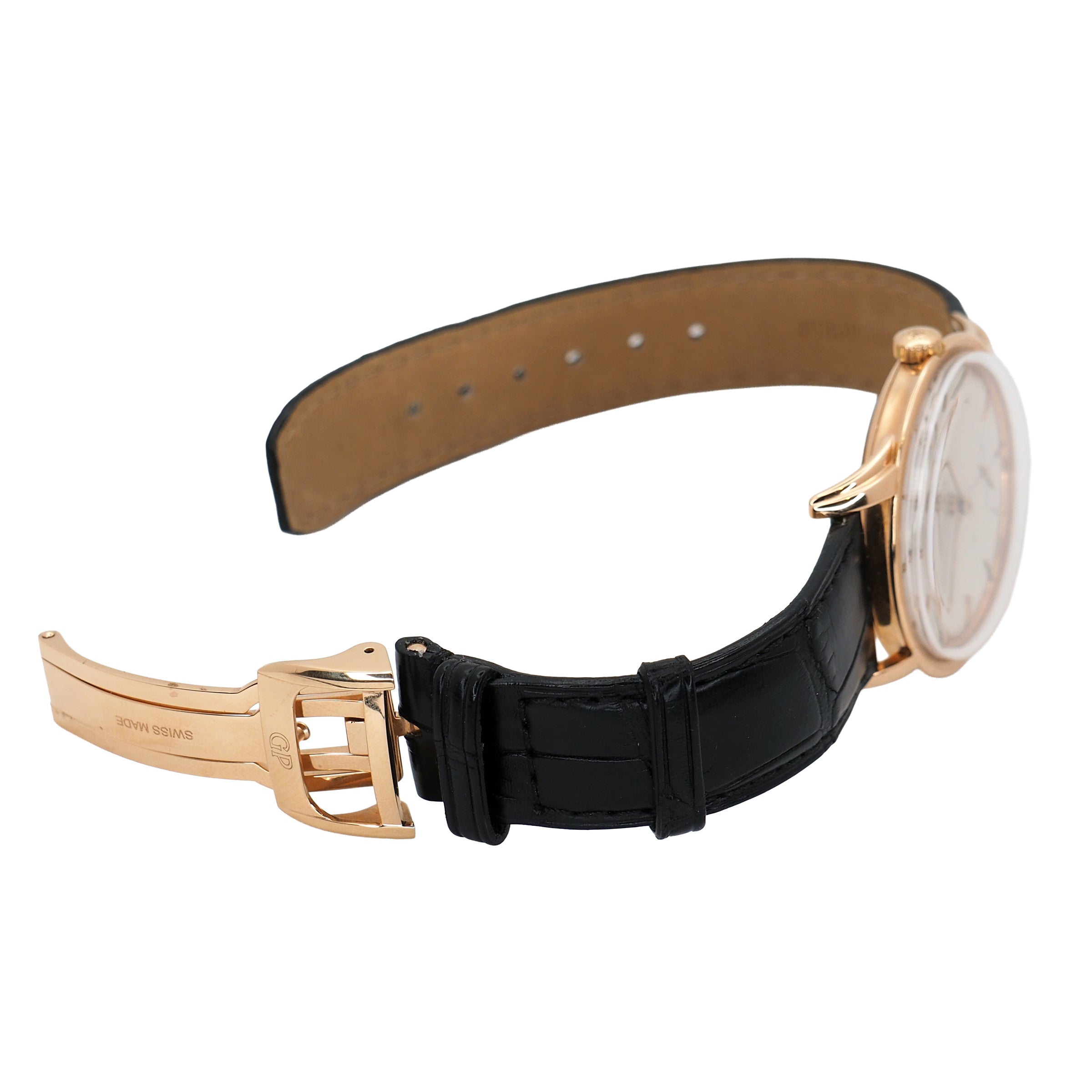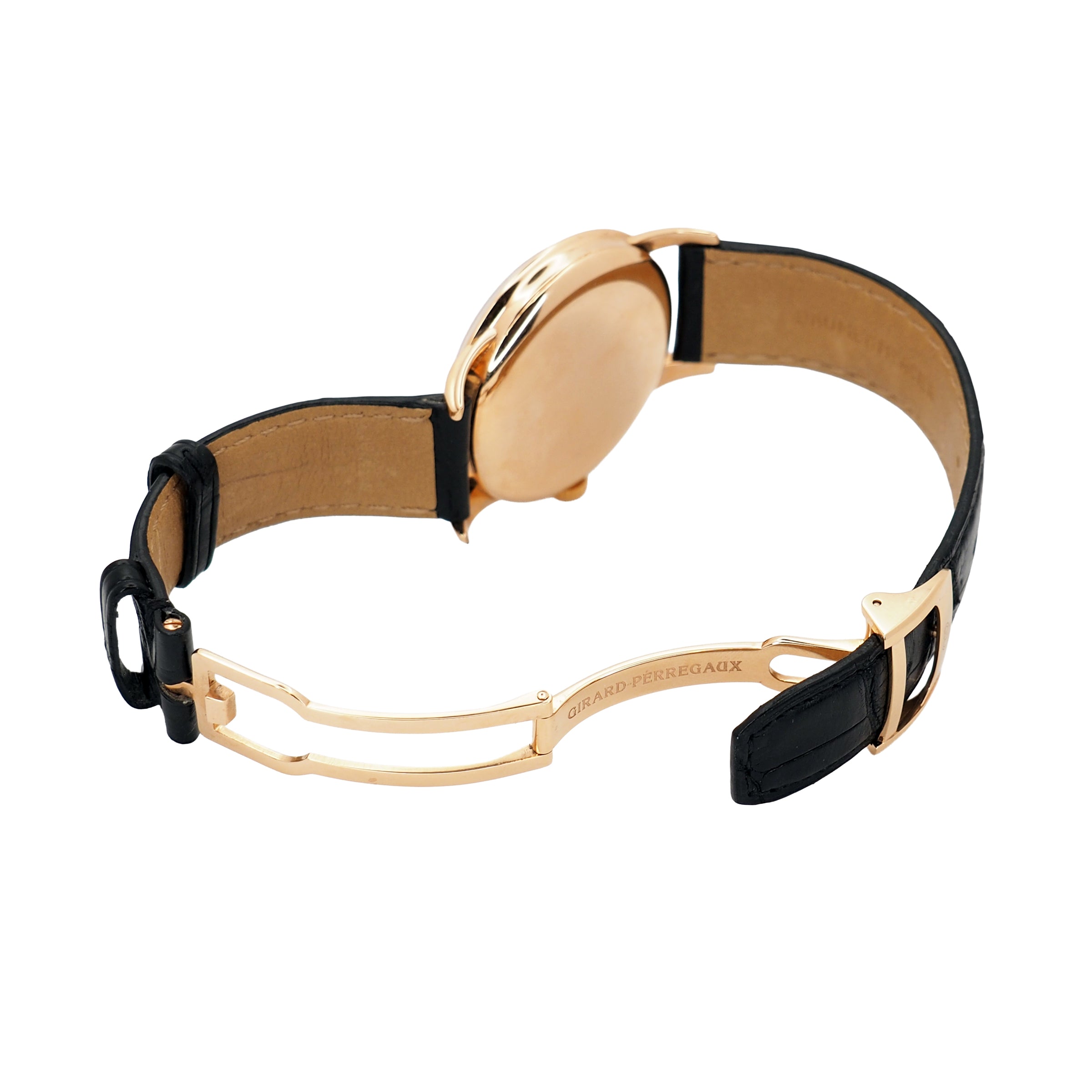 Bracelet: Chocolate leather strap with rose gold Girard-Perregaux deployment clasp