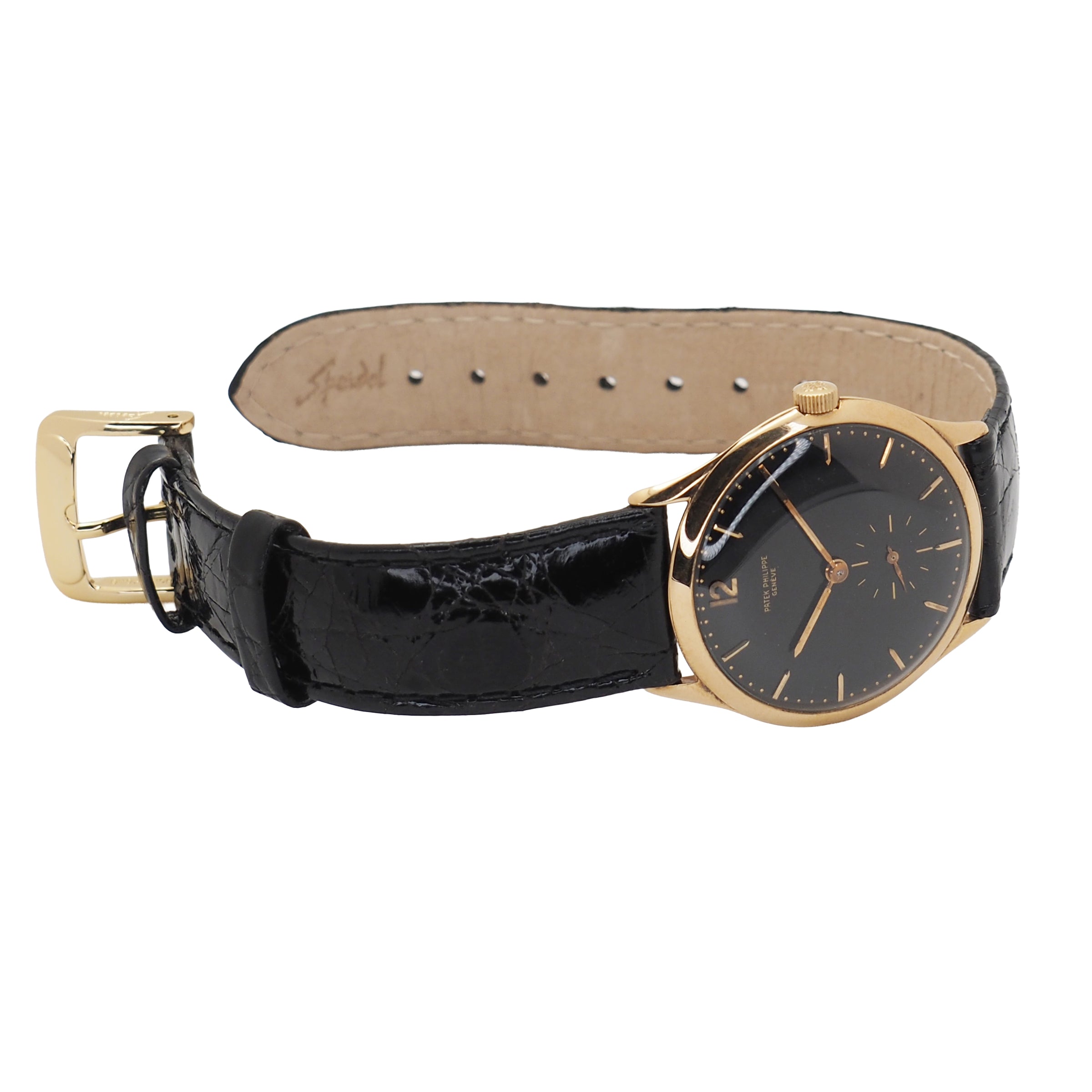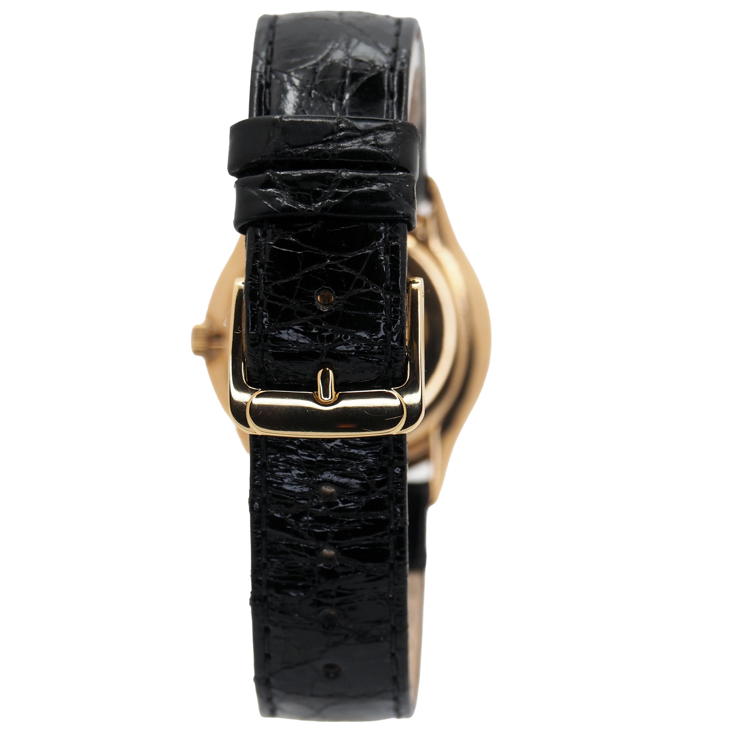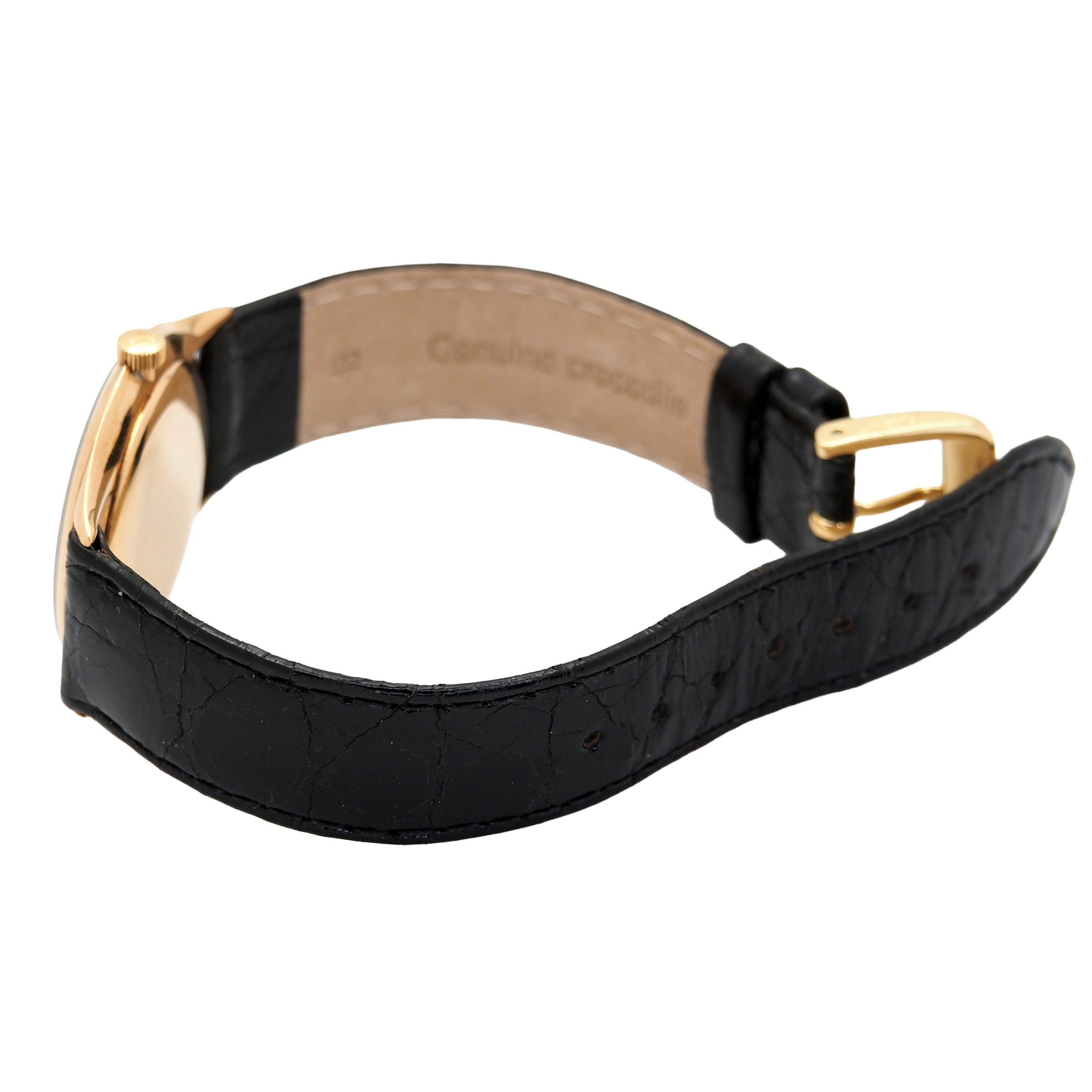 Bracelet: Black crocodile skin with yellow gold buckle