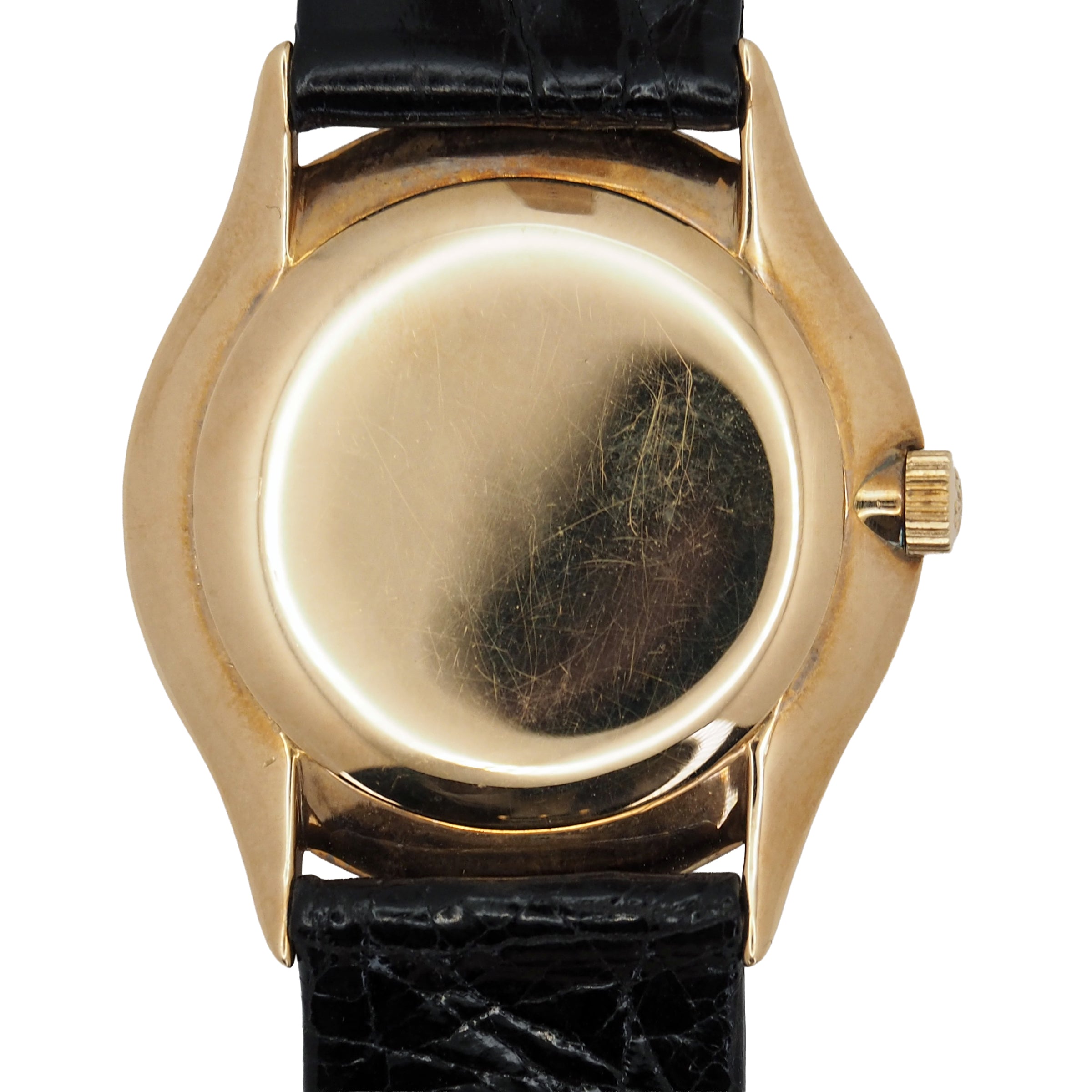 The Patek Philippe Calatrava Ref. 2557 is a refined expression of mid-century elegance, embodying the quiet luxury and technical mastery that define the Calatrava lineage. Introduced in the 1950s, this model features a 32.5mm case crafted in solid 18K yellow gold, striking a perfect balance between timeless proportion and discreet presence on the wrist. Its minimalist black dial, often found with applied gold baton hour markers and slender dauphine hands, exemplifies the design purity Patek Philippe is renowned for. A small seconds subdial at 6 o’clock adds a touch of functional symmetry without disrupting the dial’s clean aesthetic.